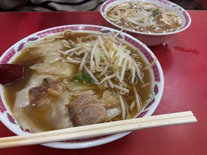 焼きそばはかなり時間がかかりますとのことだったので、中華そばとわんたん麺を注文💡