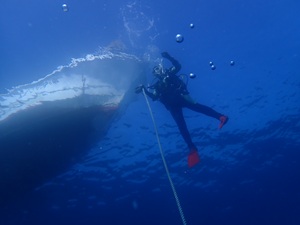 アンカーがだらっと伸びているほど水中も穏やか、快適だ~~~♪