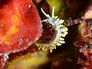 みなべだしの根にはウミウシがたくさん!久しぶりに見たミツイラメリウミウシは、キイロや白の個体が。コガネミノウミウシやハクセンミノウミウシ、ニシキウミウシ幼体などなど。