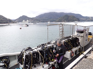 音海到着すると、既にボートで準備をしているダイバーが!?